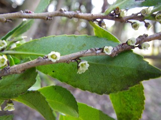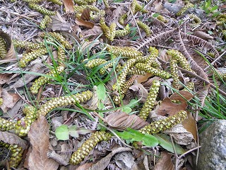 【左】ヒサカキ(雌花)   【中】ヤシャブシ雄花(落花)   【右】観察会会場の雑木林