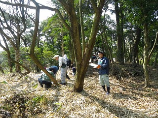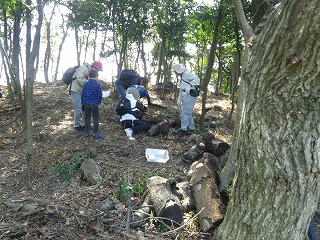 観察会は「危険な生きもの」(ムカデ、成虫越冬中のハチ、マダニ)についての注意と朽木の生きものの観察方法について説明してから始めました。