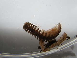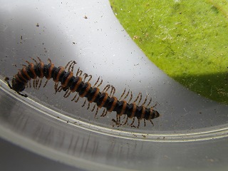 足の数60本程(学名千本足の仲間)マヤマトアカヤスデ?、クラギヤスデや言マクラギヤスデ