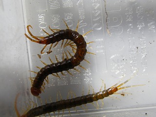 足の数30本程(百足の仲間)トビズムカデ、アオズムカデ、イシムカデむ言トビズムカデ、アオズムカデ、イシムカデ