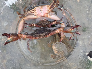 イシガニ、イソガニ、ヒライソガニ、ホンヤドカリの仲間、コブヨコバサミ、フナムシ