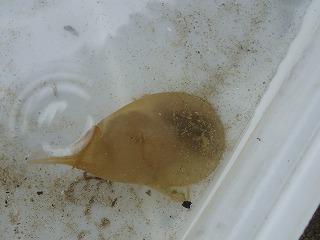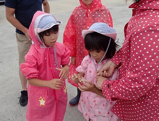 採集した生き物のお話をするため、参加者の皆さんに集合を掛けました。時に雨が降ってきました。お話をいつもより短めにして少し早めの解散をしました。