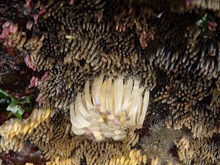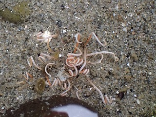 【左】ミズヒキゴカイ 【中】ヨロイイソギンチャク 【右】タテジマイソギンチャク
