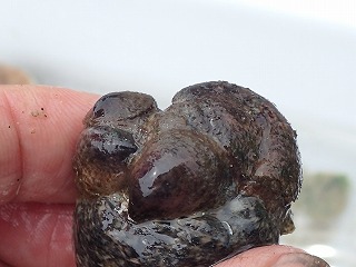 【左】フナムシ 【中】イボニシとイボニシの卵 【右】小さいのがイボニシ。大きいのがアカニシ