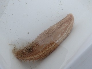 【左】左、ナミイソカイメン。右、キクノハナガイ 【中】イシコ 【右】クロムシというゴカイの卵