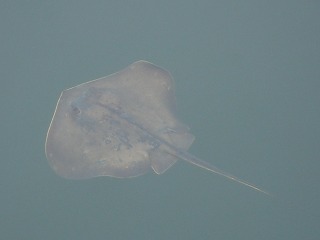 集合時間前に蒲池港で悠然と泳いでいるアカエイを見つけました。どうも一、二匹では無く、次々と発見しました。観察会前の観察を終わり、諸案内等をした後、海岸に移動しました。
