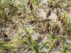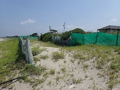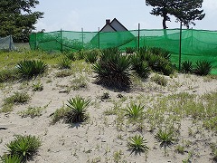 コウボウムギ(雌株・雄株)、コウボウシバ、ハマヒルガオ、ハマボウフウ(開花)、ハマゴウ(開花)、ビロードテンツキ(開花)、オカヒジキ、スナビキソウ、ハマダイコン、ハマエンドウ、ケカモノハシ(開花)、ツルナ(開花)、ホコガタアカザ、マルバアカザ、トベラ、ダンチク(外来種)コマツヨイグサ、オオフタバムグラ、アメリカネナシカズラ、アツバキミガヨラン、ウチワサボテン