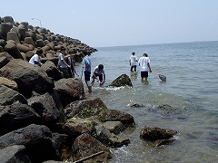 別枠として、たまたまこの日が大潮でしたので合わせて名古屋の高校生物部の生徒が10名参加し、11時から海の生物の観察会を行いました。(記・降幡)
