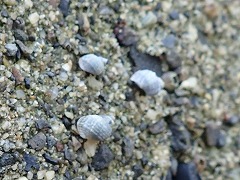 【左】アカニシの卵とイボニシの卵 【中】アラレタマキビ? 【右】ヨロイイソギンチャク