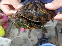 【左】ハグロトンボ 【中】ベンケイガニ 【右】アカミミガメ(外来)