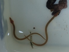 【左】ドジョウ 【中】カワアナゴ 【右】カダヤシ(外来)