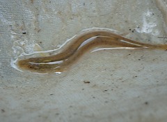 【左】ウナギの稚魚 【中】ゴクラクハゼ 【右】スミウキゴリ
