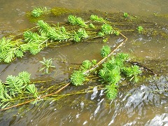 【左】オオフサモ(外来) 【中】ヤブガラシ 【右】アレチハナガサ(外来)