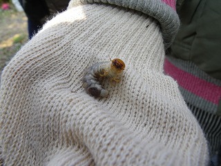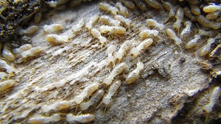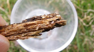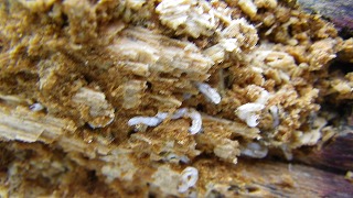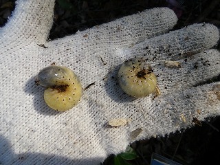 【左】ヤマトシロアリ 【中】 【右】朽ち木の下には沢山のカナブン(幼虫)