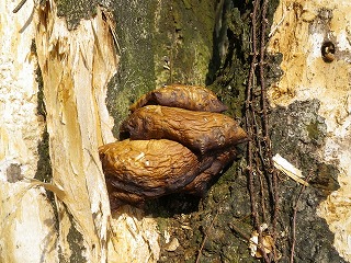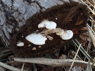 【左】キノコの仲間 【中】キノコの仲間 【右】シロアリに食べられた朽ち木