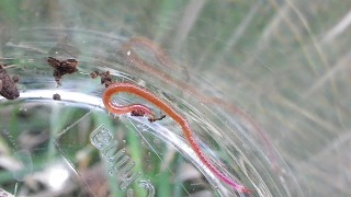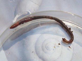 【左】ヨツコブゴミムシダマシ 【中】ミミズの仲間 【右】キセルガイ