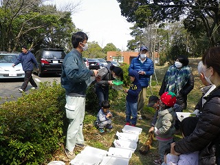 【左】ジムカデ 【中】トビズムカデ 【右】来年度の行事予定案内