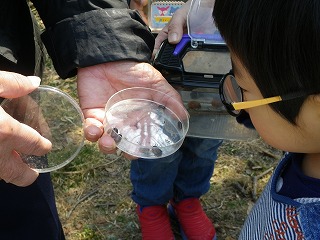 【左】コクワガタを沢山捕獲 【中】こりゃ何だ? 【右】足の数を数えてみよう