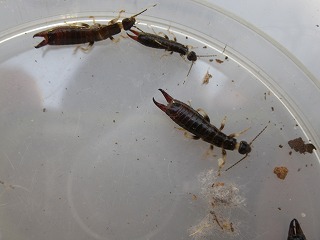 【左】ユミアシゴミムシダマシ(幼虫) 【中】キマワリ(幼虫) 【右】ハサミムシ(成虫)
