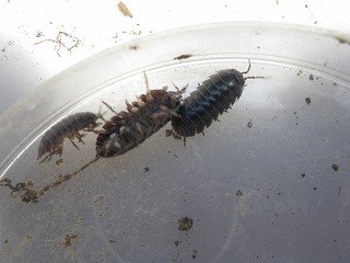 【左】クロスズメバチ(死骸) 【中】オカダンゴムシ 【右】オカダンゴムシの雌雄の見分け方