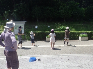 梅雨明け5日目の土曜日は夏本番。大池公園の一隅でゴム銃を作って遊んだ。