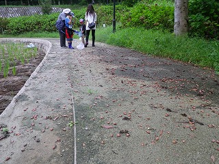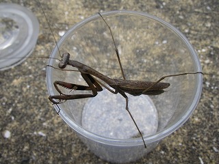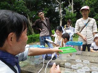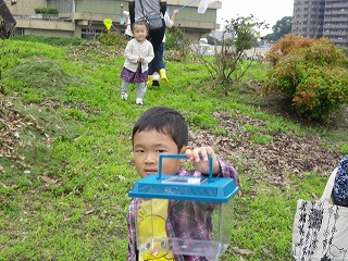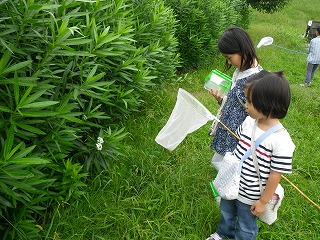 【左】菖蒲園で虫探し 【右】虫かごいっぱいでした