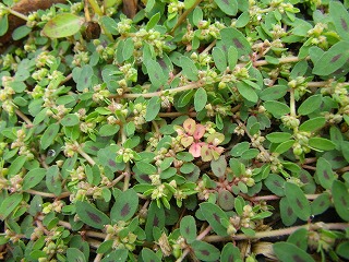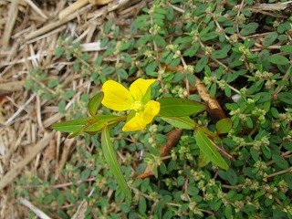 【左】 アカバナ科ヒレタコボウ(アメリカミズキンバイ) 【中】コニシキソウ 【右】