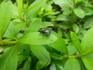【左】ナミヒカゲ 【中】コアオハナムグリとツマグロキンバエ 【右】マメコガネ