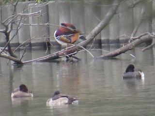 【左】ホシハジロ 【中】オシドリ 【右】ヒヨドリ