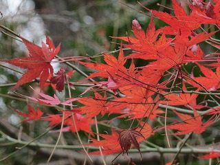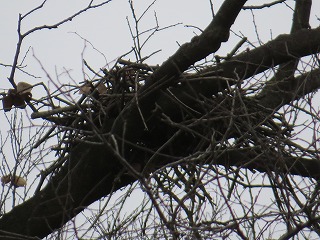 【左】カラスの巣? 【中】トウネズミモチ(有害外来種) 【右】モミジの紅葉が残っていました