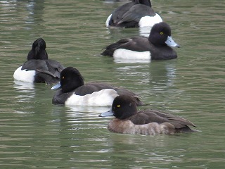 【左】キンクロハジロの雄と雌 【中】カルガモ 【右】ハシビロガモ