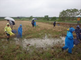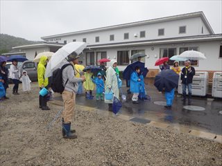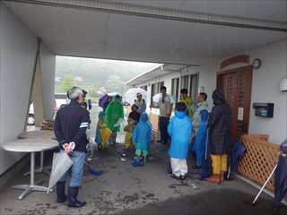 雨が開始30分前ぐらいから激しくなってきて、中止も考慮したがエコクラブの参加者もたくさん来てくれたので決行することにした。