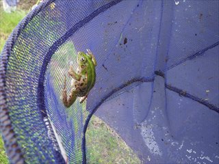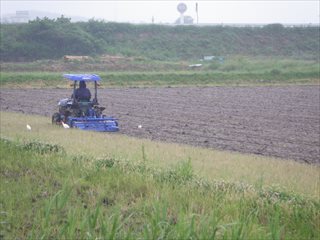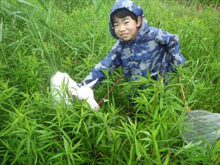 耕運機の後をついて回るアマサギの説明を古川さんにして頂き、新川(用水路)を探りながら起こす前の田んぼでカエルやザリガニを捕まえたりしました。