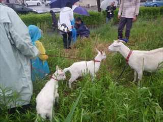 途中除草中のヤギと触れ合って、分かち合いをして終わりました。