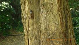 ビオトーブ回りでは東海地域の固有種で知多市の天然記念物のマメナシの木には小さな実が付いていたし、水辺をスイスイ飛び、ひらひらと舞うトンボやツバメが飛び交っていた。水辺や草むらでタモを片手にトンボやバッタ、セミ、カマキリなどを無心に追う姿や観察する親子さん達が楽しむ姿があり、ビオトープの水辺の佇まいと緑豊かな森で生物多様性が実感出来た観察会であった。     (記:南川 陸夫)