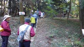 【内 容】 今年1番の冷え込みを観測された朝を迎えたが観察会が始まるころには晩秋の秋空の下での観察日和になった。紅葉谷の紅葉をまだ少し早いようでしたが、年々この谷を訪れる散策者が増えているのか、下草が手入れされた歩き易いコースになっている。神社の宮殿の脇にある四季桜が満開であり、スダジイが高く、そびえる林層はこの神社の歴史を語っている。今年は高さ4mの枯死木の木くずの中に生息していたミミズや盤根の見事な大木のスダジイの枝別れに寄生した大きなコフキサルノコシカケ等が見られた、有意義な観察会であった。 (記:南川)