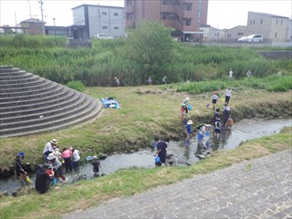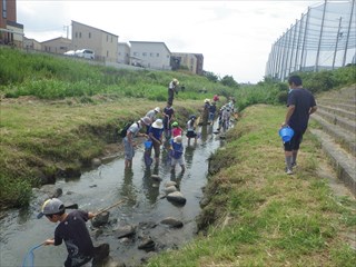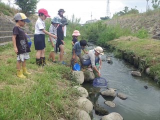 【左】稗田川で採集 【中・右】平地川で採集。子どもだけではなかなか捕れないのでお父さんも頑張る