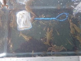 ・モクズガニ、アメリカザリガニ、スジエビ、ミゾレヌマエビ、クサガメ、ミシシッピアカミミガメ、ヌマガエル、ウシガエルのオタマジャクシ(手足あり)、カワニナ、等々