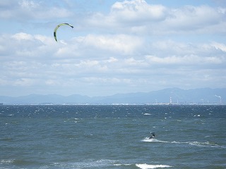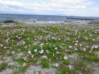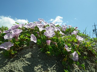 【左】カイトサーフイン 【中】ハマヒルガオ群生 【右】ハマヒルガオ群生