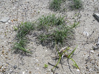 【左】コウボウムキ(雌花) 【中】コウボウムギ(雄花) 【右】スナビキソウ