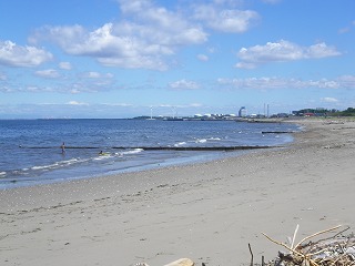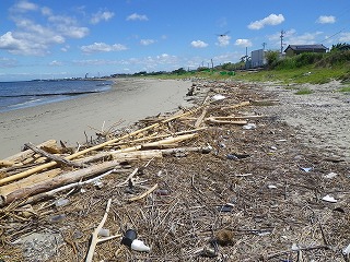 【左】12号台風後の流木 【中】砂礫浜と消波ブロック 【右】砂浜