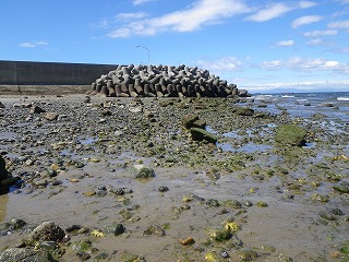 【左】イソガニ 【中】ゴカイの巣 【右】オゴノリ