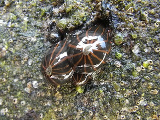 【左】タテジマイソギンチャク 【中】イボニシとその卵塊 【右】フナムシ