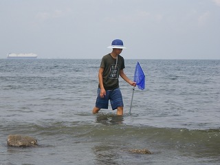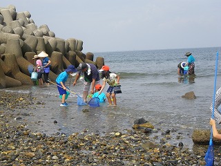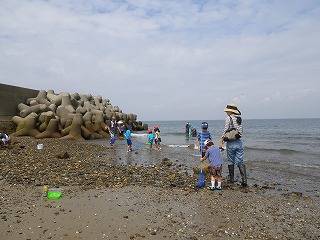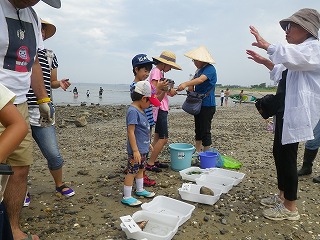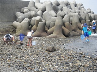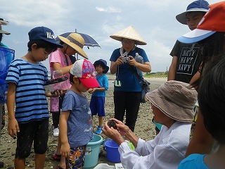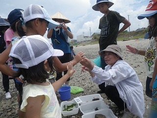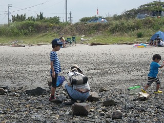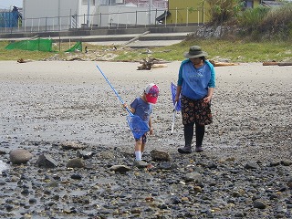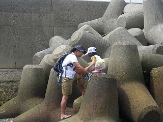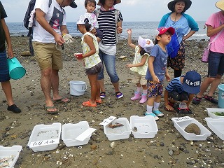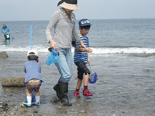 【左】ヤドカリいっぱい採れた 【右】熱心に、これなあに