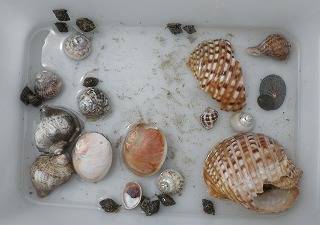 【左】イボニシ (ヤドカリ在住) 【中】アラムシロガイ (ヤドカリ在住) 【右】イシダダミ (ヤドカリ在住)