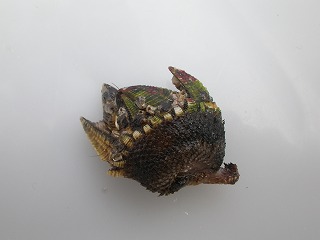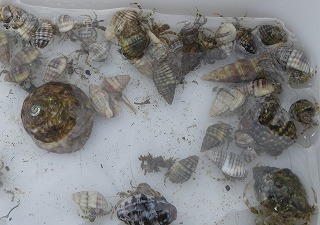 【左】コシダカガンガラ (ヤドカリ在住) 【中】コシダカガンガラ (ヤドカリ在住) 【右】タマガイの仲間 (ヤドカリ在住)