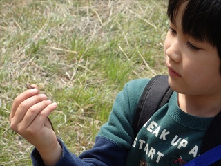 例年並みの寒さが来たおかげで、藤の新芽、コナラの新芽を見ることができました。常緑樹の深緑、地面にはタンポポの黄色、ハルジオンのうつむいたつぼみ、レンゲソウの濃いピンク、空の青色などさまざまな自然の色を観察することができました。