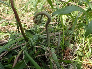 ◎植物:シロツメグサ、カラスノエンドウ、レンゲソウ、オオイヌノフグリ、タチイヌノフグリ、マツバウンラン、タネツケバナ、ナズナ、キュウリグサ、オランダミミナグサ、ツメクサ、キツネノボタン、スミレ、ハハコグサ、オニタビラコ、オオジシバリ、オニノゲシ、ホトケノザ、ヒメオドリコソウ、スズメノヤリ、スズメノカタビラ、スギ(ツクシ)ナ、ヨモギ、セイヨウタンポポ、ムラサキケマン、ギシギシ、ハナニラ、アサツキ、スイバ、イタドリ、アシ、ワラビ、セリ、ゼンマイ、アケビ、クズ、コナ ラ、カクレミノ、ヤツデ、ヤマハゼ、モウソウチク(外来種)、ヤダケ、ヤマザクラ
