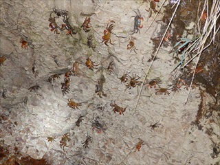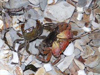 この間、アカテガニが放仔する海岸に行き、アカテガニが卵を抱いている様子などを観察しました。アカテガニは多数集結していました。