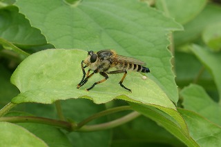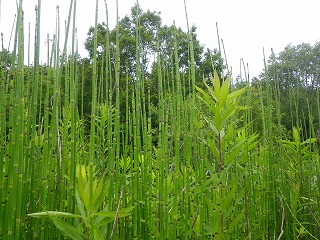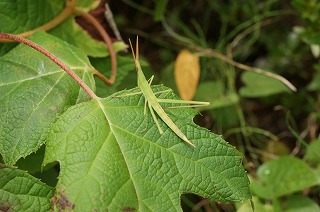 【左】コカマキリ 【中】ショウリョウバッタ 【右】トクサ湿地